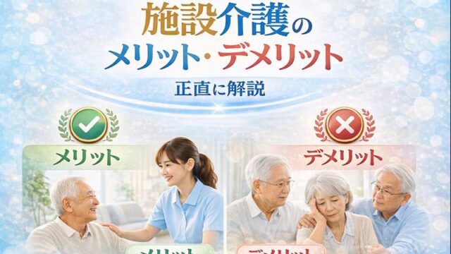 選び方・比較 施設介護の選び方|失敗しない判断ポイント 施設選びにおける大原則は、限られたリソースの中で「何を優先し、何を捨てるか」という冷徹な優先順位付けにあります。この判断を誤ると、「こんなはずではなかった」という後悔、あるいは数年での資金ショートという取り返しのつかない事態を招くことになります。 2026.01.04 選び方・比較